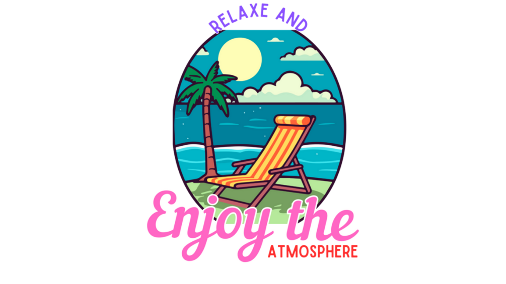 Beatch view design with quote " Relaxe and Enjoy with Atmosphere"